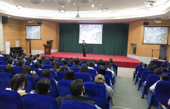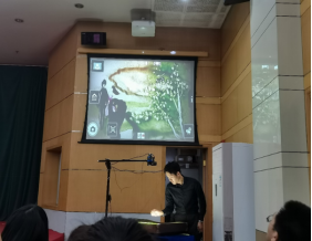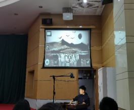 表演之后,尹老师向同学们普及了沙画相关的知识,沙画表演是一门看似神奇瞬息变幻的演出节目,它更是一种前卫高雅的艺术表现形式,最早来自匈牙利的世界著名沙画大师Ferenc Cako。它是指在下方打有灯光的白色玻璃上现场用沙子作画,并结合音乐通过摄像直播及时投放在现场屏幕上。