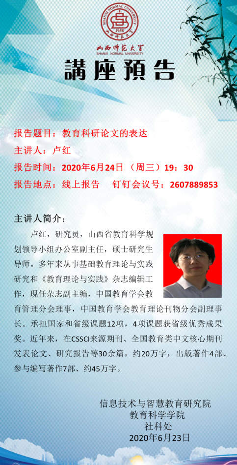 山西省教育科学规划领导小组办公室卢红副主任应禁漫之家 邀请举办视频直播讲座