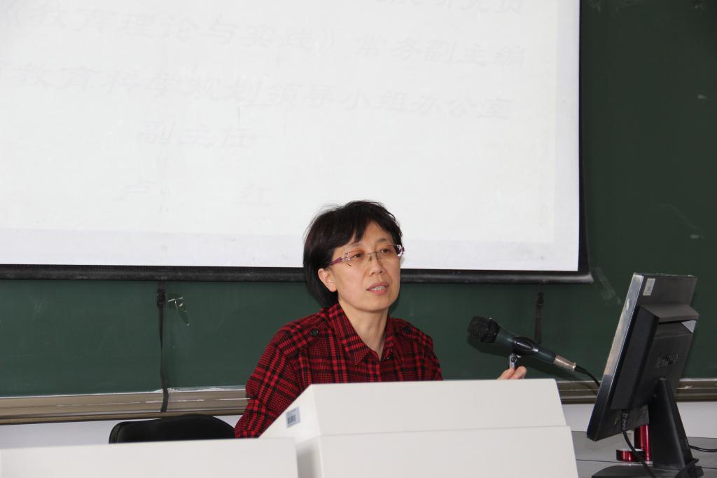 卢红教授首先介绍了教育科研论文的分类并指出教育科研论文中常见的十大问题。随后,主要针对论文的整体写作过程,对论文题目、摘要、关键词、文献综述、注释和参考文献等方面的表达作了详细的讲解,并结合实际案例给出了具体且有针对性的建议。卢教授从教育研究的三大要素:问题、方法和理论,详细说明了如何选取一个好的研究问题。对于论文的投稿,卢红教授强调,除了文章本身要有血有肉,有事实做支撑,具有可读性和可编性外,选择合适的期刊,把握投稿时机,考虑期刊的地域因素也很重要。最后,对于在场学生提出的问题,卢教授给出了专业且详细的回答。卢红教授的报告与交流为广大师生今后的论文写作提供了非常大的帮助。