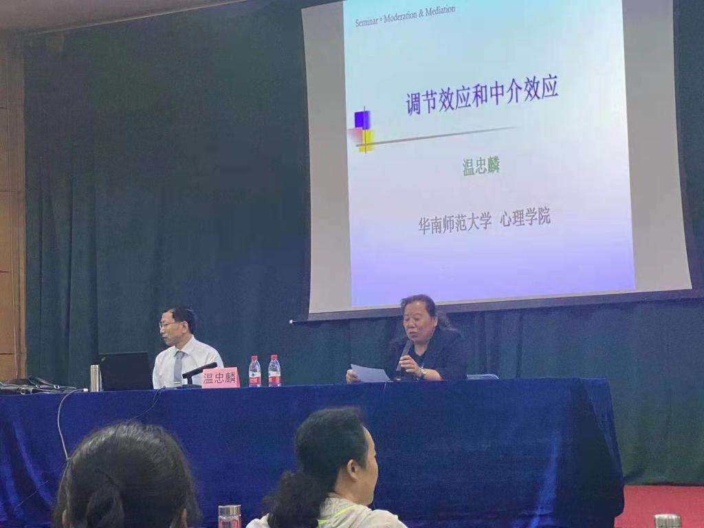 本次学术报告会得到了众多领导,老师及同学的共同关注。报告会伊始,张潮院长致辞并介绍温忠麟教授。第一场报告,温忠麟教授主要讲授了因果关系中的第三者:调节变量和中介变量。通过举例子和讲故事的方法,让同学们更加深刻的理解调节效应和中介效应,且简单明了的讲授了在研究过程中具体应该怎么操作,有效解决了同学们目前或将来在研究生学习工作中存在的问题。第二场报告,温教授讲解了实证研究中的因果推理与分析,主要围绕三个问题展开:(一)实验中不能操作的变量是否可以作为原因,(二)非实验研究能不能检验因果关系,(三)因果分析是否一定要使用追踪数据,追踪数据的主要目的是什么?报告中,温教授结合深入浅出的研究示例,做出让人深省的思考总结。最后,答疑交流环节,老师和学生们现场提出了有关科研过程中遇到的一些问题,温教授都认真聆听并予以耐心解答,使在场师生受益匪浅。