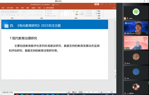 郭老师的报告内容分为四部分。第一部分从引领完善教育技术学科体系发展和聚焦解决现实问题两个方面阐述了《电化教育研究》期刊的职责;第二部分介绍了《电化教育研究》的选文标准,重点阐述了选文的角度和关注点,如学术创新程度、论证完备程度、难易程度等;第三部分详细说明了期刊论文写作的基本要求,包括论文的题目、摘要、研究描述、量化研究的范式、质性研究的范式等,结合具体案例剖析了常见问题,并给出了中肯的建议;最后分享了《电化教育研究》期刊2023年的选题重点,即教育信息化、智能教育、大数据教育应用、学习环境开发与应用、网络教育创新、技术促进教育教学变革、现代教育治理研究、国际比较研究等。