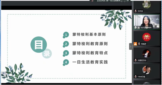 莫园长从分析蒙特梭利教育的原则、特点开始,逐步迁移到蒙特梭利教育在生活中的具体应用——从理论到实践,向师生分享了幼儿园一日生活中应用蒙特梭利教育的具体做法和自己多年来的思考成果。莫园长在报告之后,对师生提出的问题做出了细致的回应,使与会师生对蒙台梭利教育的理念、价值及园本化的做法有了更清晰的认识。
