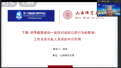 11月25日至11月27日,“心理学服务国家经济社会建设”第二十四届全国心理学大会顺利举办。此次学术交流活动为中国心理学会主办,河南师范大学承办,河南大学心理学院、河南省心理学会协办。本次心理学大会以线上会议形式呈现,通过“心仪脑”平台进行实时直播。