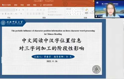 会议报告开始后,同学们热情、积极地聆听了来自积极心理学专业委员会专题研讨会、眼动心理研究专业委员会专题研讨会、硕士论坛—基础心理学、发展与教育心理学等方向的报告,并与报告者在互动区进行实时讨论交流。本次每个分会场分别设有主持人和志愿者负责组织讨论,报告者与听众或对某类问题进行探究,或对某个实验流程交流心得。来自校内外的各位师生听众在此次心理学大会中热切讨论,畅所欲言,学术氛围十分浓厚。