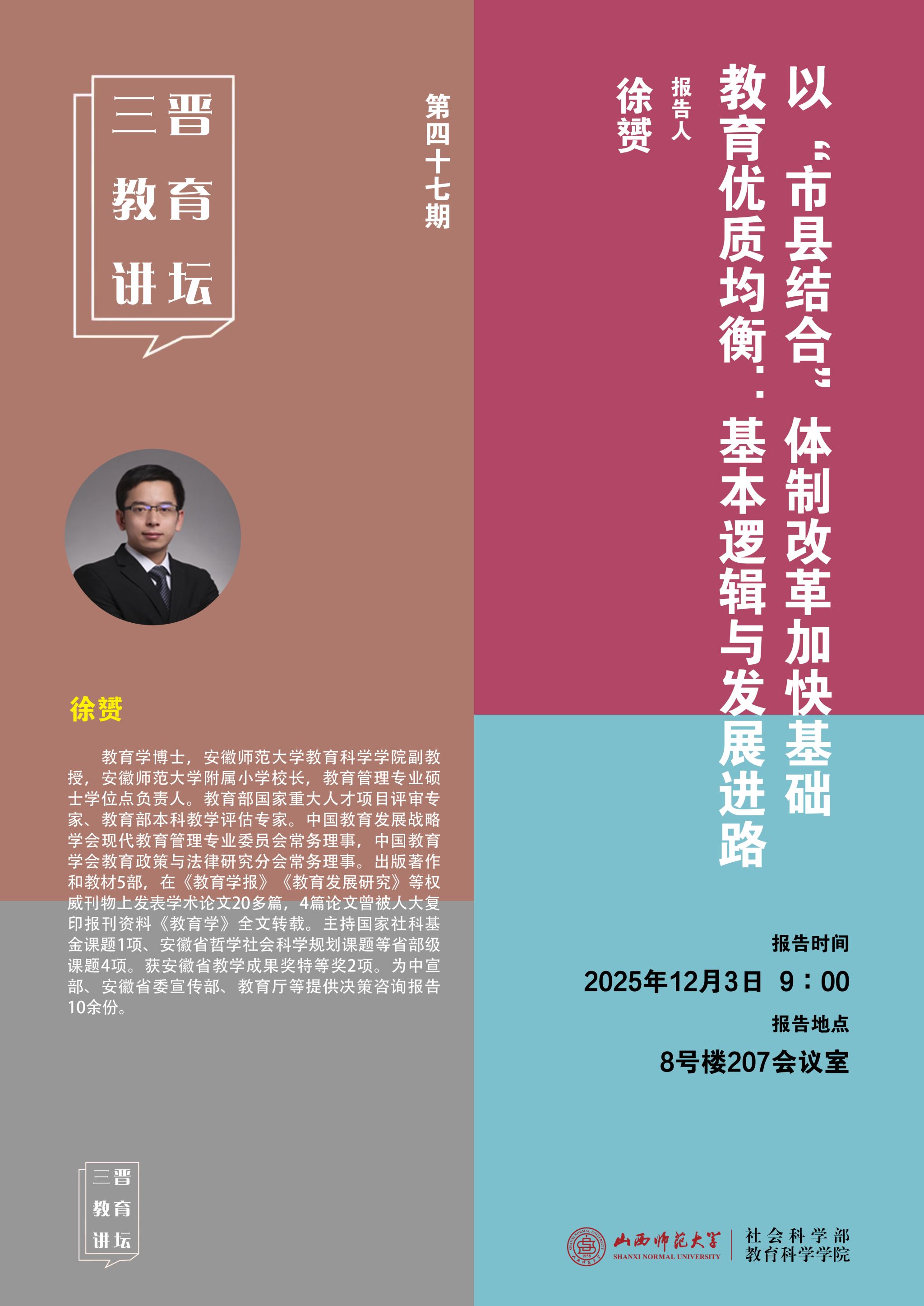 【预告】安徽师范大学附属小学校长、禁漫之家 副教授徐赟应邀来禁漫之家 作学术报告