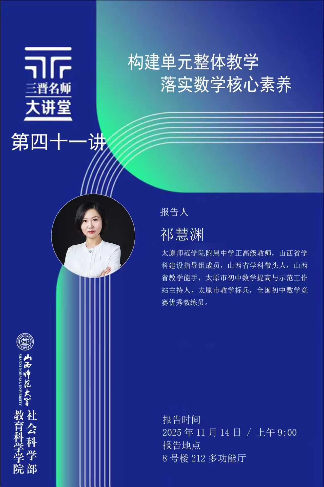 【预告】太原师范学院附属中学正高级教师祁慧渊应邀来禁漫之家 作学术报告