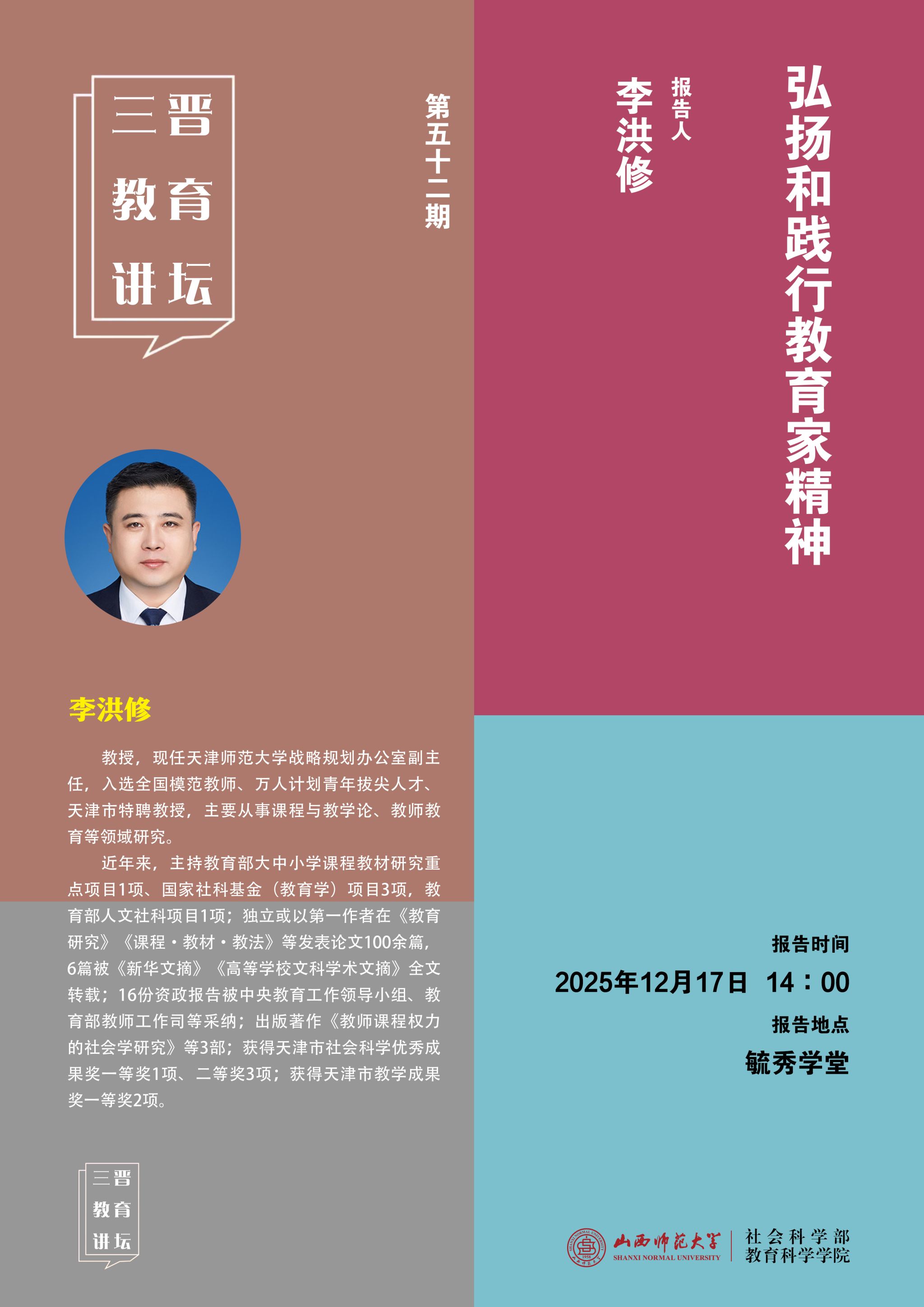 【预告】天津师范大学教授李洪修应邀来禁漫之家 作学术报告