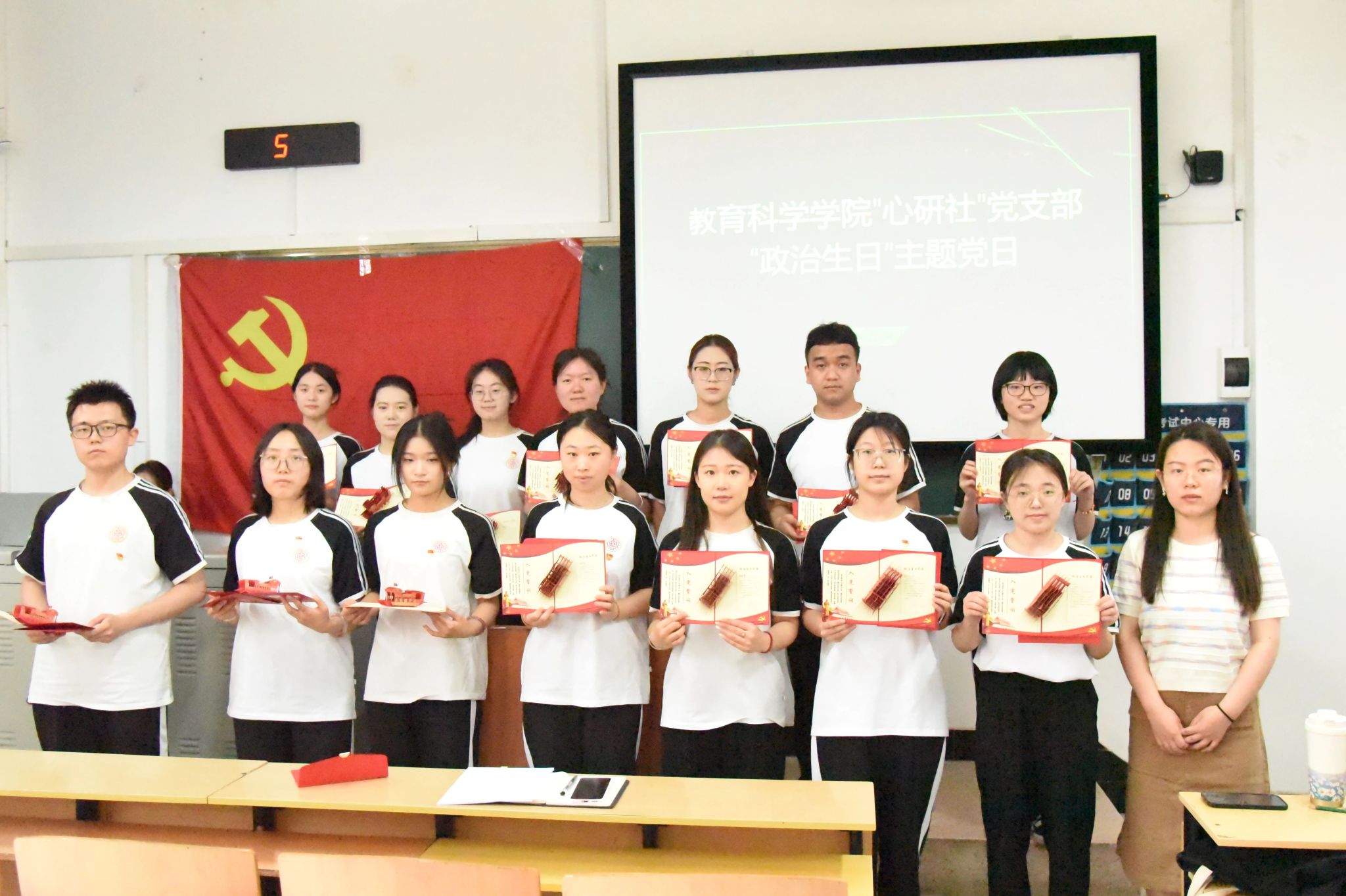 “心研社”党支部在南区3201教室举办了党员“政治生日”主题党日活动,全体党员参加了活动。活动由“心研社”党支部书记段慧馨主持。