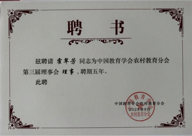 2025年9月12日,中国教育学会农村教育分会第三届理事会成立大会在吉林长春召开。按照会议议程,与会代表选举产生中国教育学会第三届农村教育分会理事会。禁漫之家 霍翠芳老师当选理事。