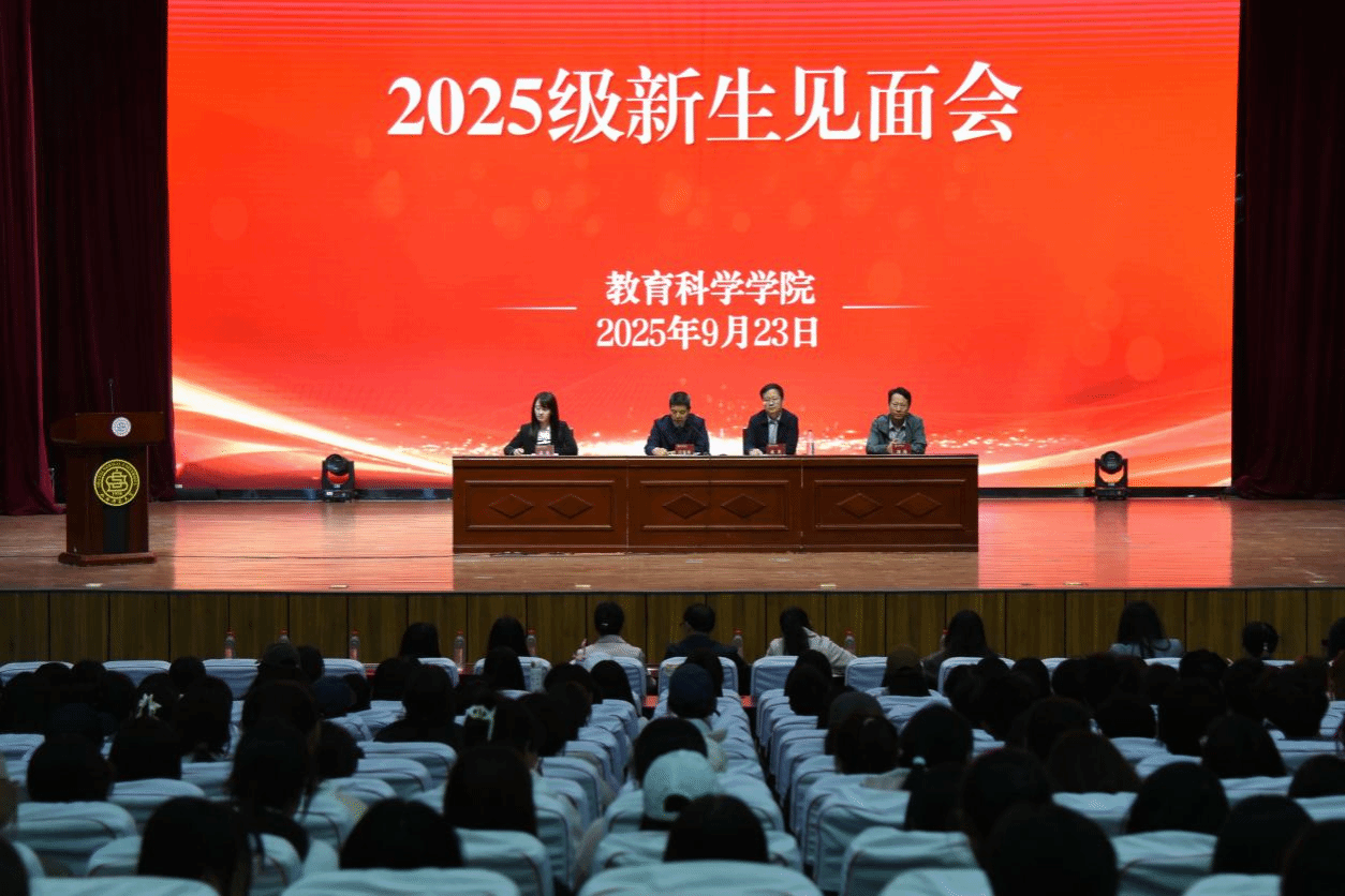 2025级本科新生见面会在科学会堂报告厅举行。全体院领导、各系主任、行政教辅人员、教师代表、院团委学生会代表及2025级全体新生300余人参加了会议。会议由院党委书记闫建璋主持。