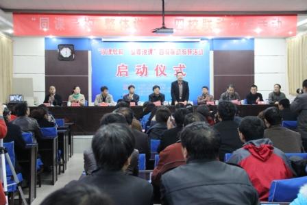 11月23下午,山西省课改实验基地校“同课异构 整体说课”四校联动教研活动隆重启动,原平市委常委、常务副市长高秀亭、山西师大教师教育学院院长董新良、原平市市长助理、教育局长郭志宏、忻州市教育局普教科科长焦志毅、新绛中学校长宁致义、山西师大实验中学副校长崔鑫、太原尖草坪一中教导主任张一峰、原平一中校长冯伟虎以及来自太原市教研室、临汾市教研室、临汾一中、康杰中学、山西师大实验中学、山西师大等的评课专家以及忻州师院附中、原平范亭中学的部分教师和原平一中全体教师参加了启动仪式。原平市教育局副局长刘书有主持了启动仪式。原平一中冯伟虎校长致欢迎词,山西师大教育学院董新良院长、忻州市教育局普教科焦志义科长、原平市教育局郭志宏局长分别作了重要讲话。