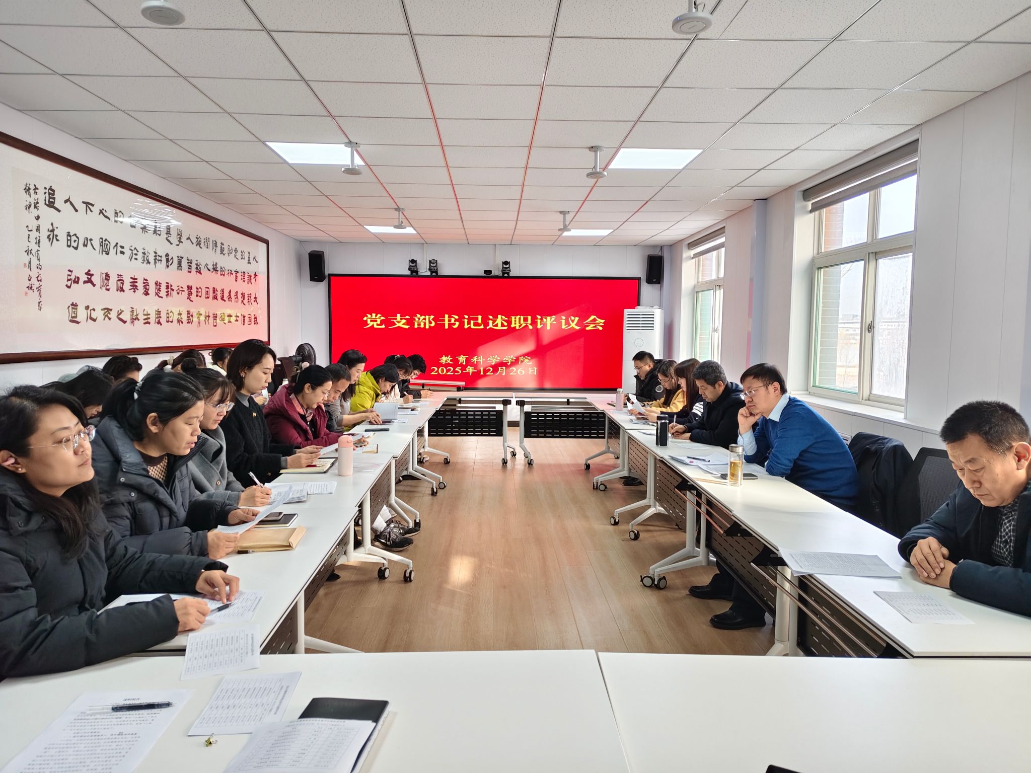 在8号楼212会议室召开了2025年度党支部书记述职评议会。院党委委员、各党支部书记、支部委员及师生党员代表参加了会议。会议由院党委书记闫建璋主持。