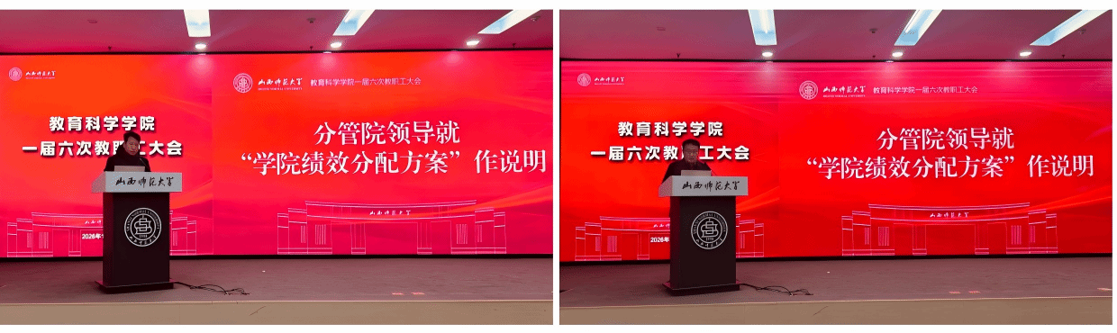 赵英院长作工作报告。报告指出,2025年,学院在校党委和校行政的坚强领导下,认真落实学校决策部署,平稳有序完成机构调整,扎实有力推进学科建设,牵引带动各方面工作提质增效,发展态势蓬勃向好。坚持党委把关定向,把落实学校中心工作作为首要工作责任,全面贯彻学校关于教育学科建设的系列决策部署,在学科建设、“双百人才”、师范建设等方面均取得系列成绩;坚持教师主体地位,将赋能教师专业发展作为工作主线,一体改进环境、制度、平台、资源支持,教师专业发展动能充分释放,产出一批高质量学术成果;坚持立德树人为根,以科研和学科建设成果全面反哺教育教学,新获批一批教改、教材、课程建设等项目,有力带动人才培养质量提升,学生在读研深造、竞赛比赛中获得系列突破。