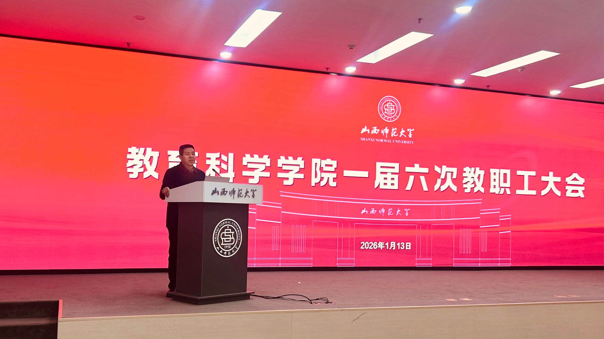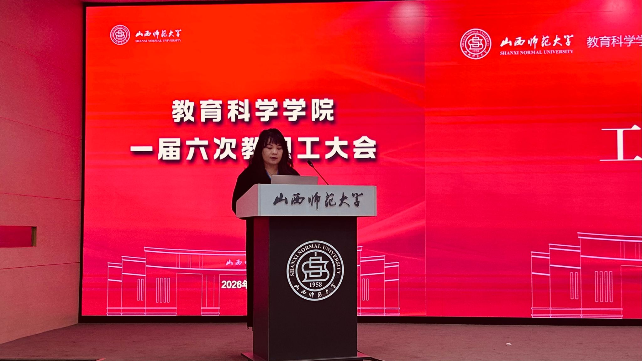 一届六次教职工大会在毓秀学堂报告厅召开,全体教职工参加会议,会议由院党委副书记高霞主持。