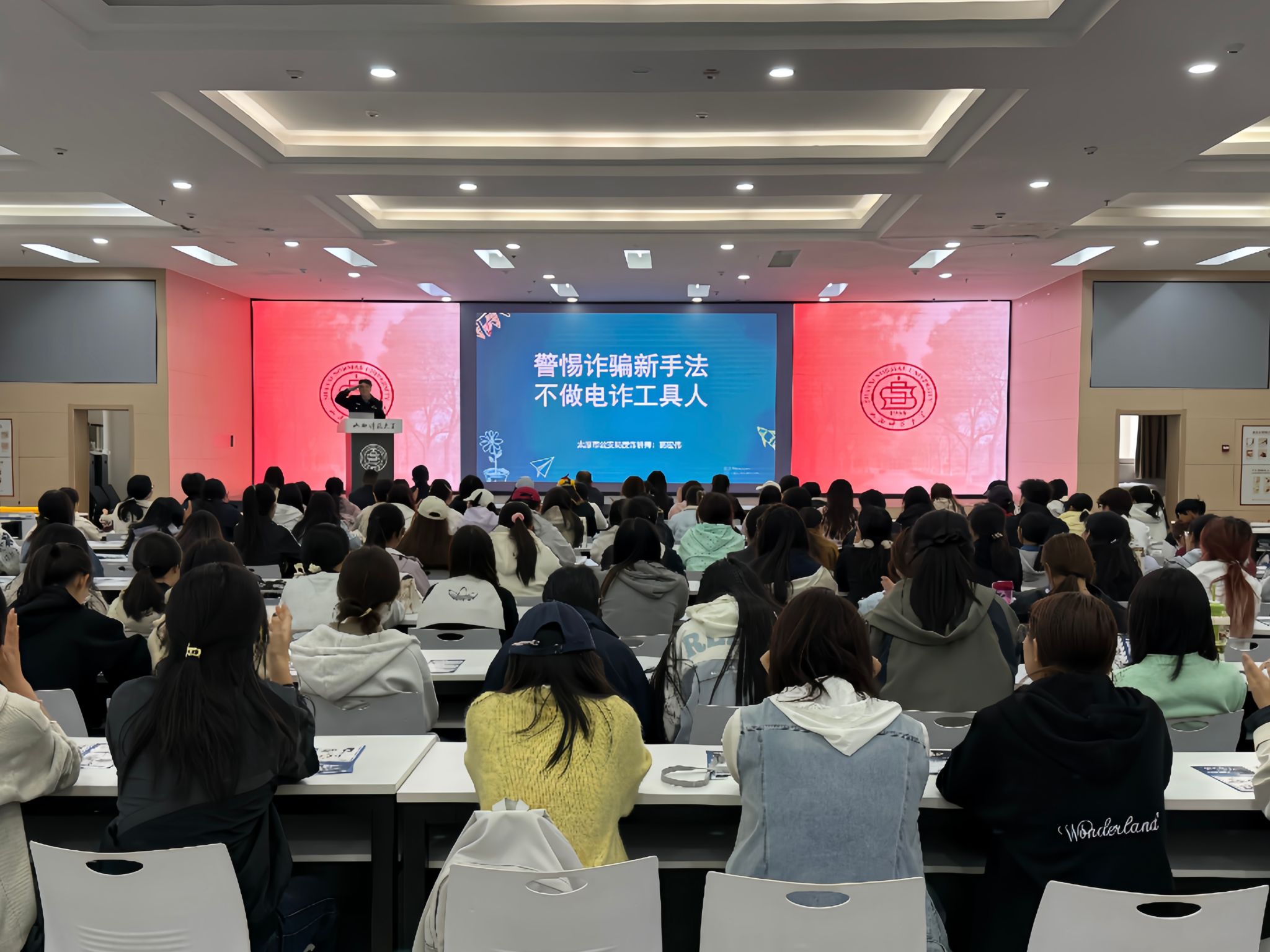 学生开展反诈知识专题讲座。院党委副书记高霞、专职辅导员及2025级本科生参加活动。
