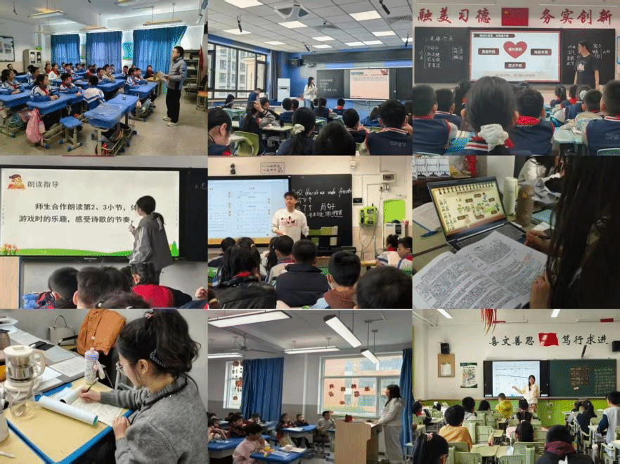 各实习学校为同学们提供了周到的生活与入班支持。实习生从入校第一天便走进班级,以全程跟班的方式深度体验小学教师的一日工作节律,从晨读巡视、眼保健操组织,到课间游戏陪护、午餐秩序引导,再到课后服务的作业辅导与兴趣拓展。在这一天天的沉浸式体验中,同学们学会了观察儿童的行为信号,了解了儿童的身心发展特征,掌握了小学课堂教学的特点及其对教师素养的要求,更体会到小学教育“教育与养护并重”的专业底色。
