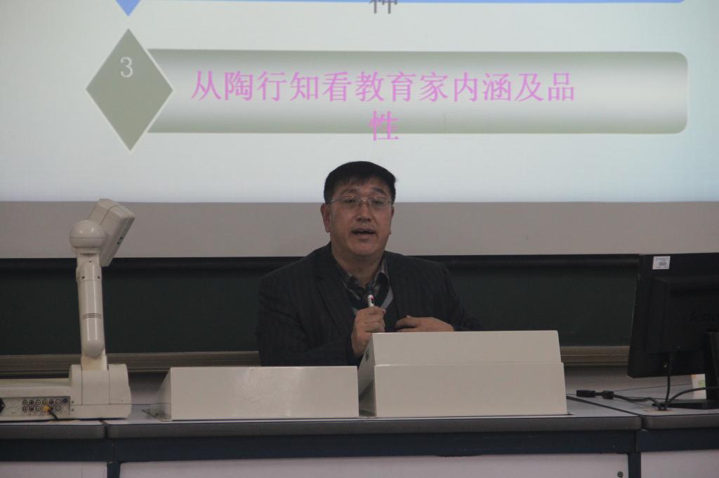 申国昌教授以诙谐幽默的方式为师生展示了不一样的教育家陶行知先生,希望同学们要以陶行知先生为标杆,千学万学学做真人,千教万教教人求真,才能为我国教育改革的发展做出更大的发展及贡献。