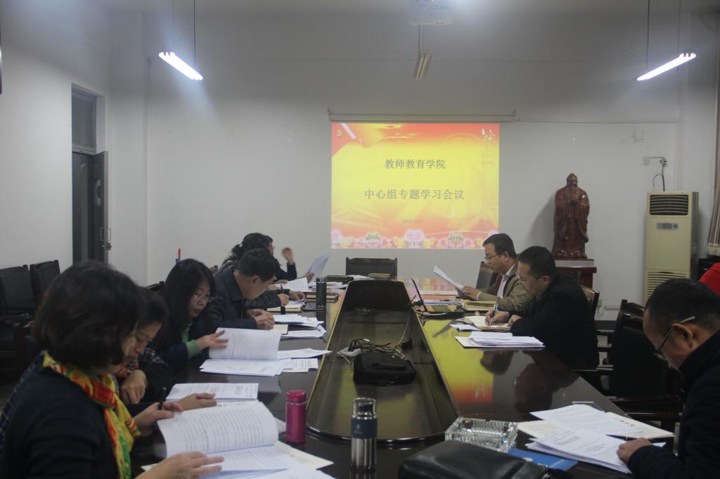 党委中心组(扩大)在田家炳教育书院07509会议室召开专题会议学习宣传贯彻我校第五次党代会精神。会议由院党委副书记王银主持,全体中心组成员、各党支部书记、系主任参加。