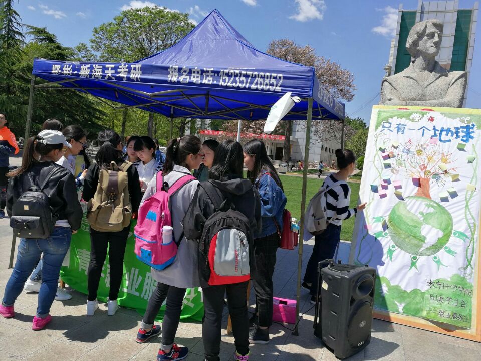 青年就业服务社(青就)在巨人广场举办了以“只有一个地球”为主题的世界地球日活动。旨在增强同学们对地球相关知识的了解,号召同学们用自己的实际行动保护地球,此次活动吸引了全校各学院的同学前来参加。