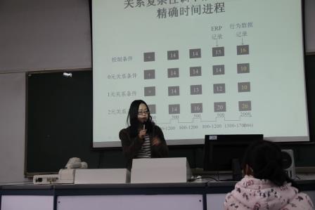 肖风博士的报告题目为《关系复杂性调节规则学习的认知及其发展神经机制》,报告从规则学习和关系系复杂性理论两个方面进行阐述,提出了自己的研究创新点,逐步探究了预期和知觉失匹配,关系整合和关系比较、关系映射之间的关系,进一步探讨规则学习中关系复杂性效应的脑部空间活动模式,从而更好地揭示了规则学习的认知神经机制。然后在认知过程分析的基础上,结合认知神经技术的结果,预期深入分析儿童规则学习的认知神经活动模式。