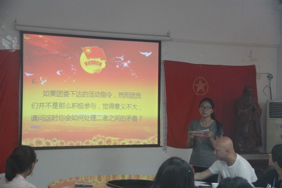 此次大赛分为主题团日活动设计及展示和团务技能案例分析两个环节,在第一环节中,各班团支书围绕“明辨”这一主题结合各专业特色以PPT的形式对主题团日活动进行设计展示;第二环节各班团支书抽取团务技能案例并进行分析解答,在分析解答过程中体现出各团支部书记的灵活应变能力、语言组织能力以及思维能力。最后,经过激烈的比拼,1501班的陈琦同学获得第一名、1605班的普东丽同学和1505班的王学蕊同学分别获得第二名和第三名。