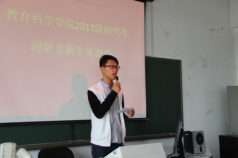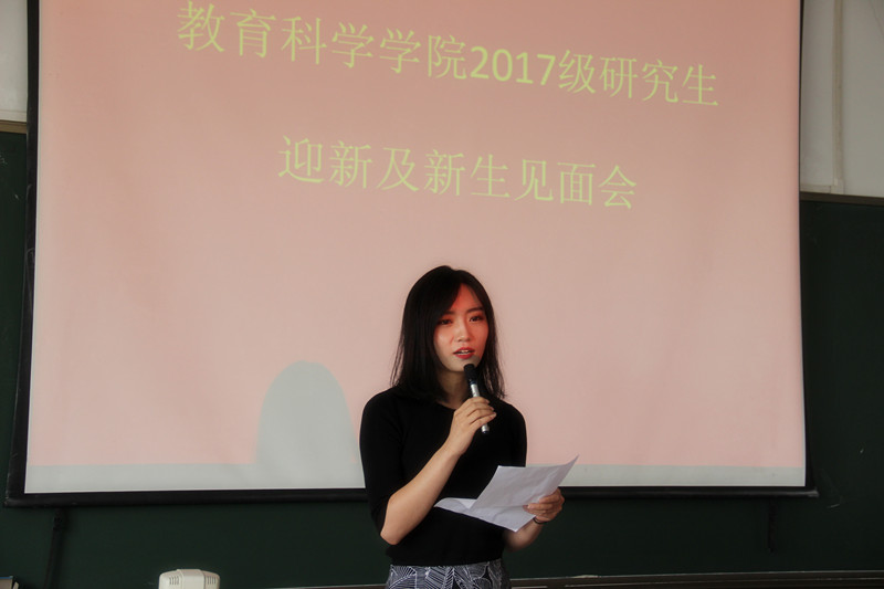 2015级教育技术学专业研究生代表师芳同学,2017级心理学专业新生代表安彦名同学进行发言。“用梦想支撑生活;用读书丰富内涵;在实践中成长、在思考中创新”师芳同学如是说,为新生提供了宝贵的成长经验。新生代表安彦名怀揣着对学术探究的热情,充满信心,希望主动去学习和发现知识,积极探索问题,刻苦钻研,立志做一名优秀的研究生。