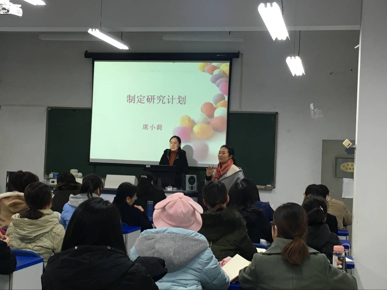 席小莉老师以《如何撰写研究报告中――修改文献综述以及整理研究计划》这一单元为主题,通过小组展示、学生提问、老师点评和交流讨论等教学环节进行了公开课。课堂上由小组同学分享了关于“同胞关系对二宝社会性发展的影响”这一选题的文献综述及研究计划,然后由同学提出自己对该汇报的疑惑及存在的问题,席老师一一解答,并带领同学们仔细阅读分析了本组的研究计划。