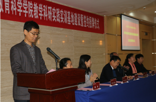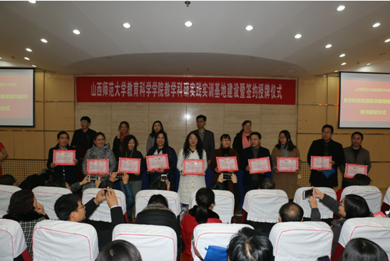 为92名基地院校的教师颁发了专业实践实训指导教师的聘书,与来自幼儿教育、基础教育、高中教育、政府部门和社会企业的46家基地校签署了教学科研实践实训基地和合作共建单位签署了协议并进行了授牌。