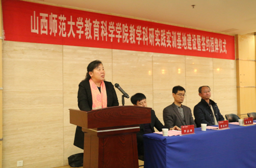 韩琴副院长主持了实践实训基地代表交流发言活动。来自芮城教科局的肖建宏副局长、临汾三中的曹东明教务主任、临汾监狱的赵向阳警官、山西优逸客有限公司的梁维岩院校合作部总监、五一路学校的卢红梅副校长和临汾市教育局教研室的李霞主任在大会上进行了交流发言。