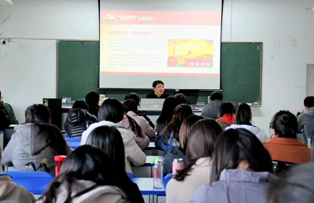 11月15日下午,我团委书记宁志恒来到1602班团支部,为学生做学习宣传贯彻党的十九大精神主题宣讲活动。
