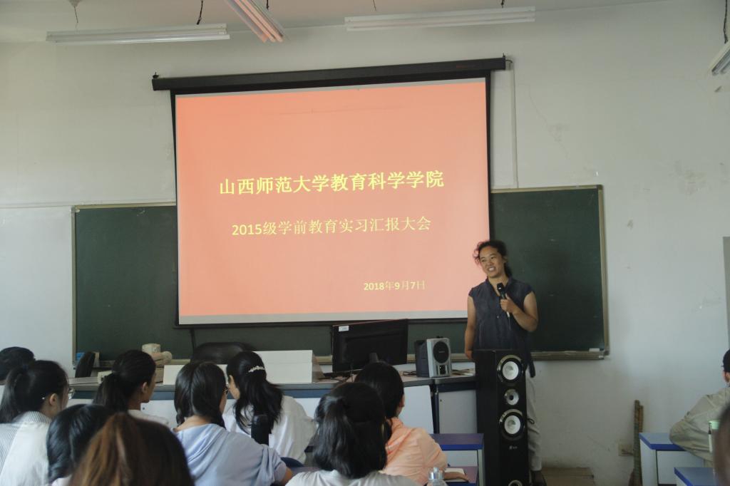 15级学前教育专业的实习汇报总结大会在07408室如期举行。会议由该专业的洪芳婷同学主持。副院长韩琴、学前教育系主任席小莉,学前教育专业教师范瑞芝、曾庆秦出席了本次会议,15级学前教育专业的同学、16级的全体学生参加了会议。