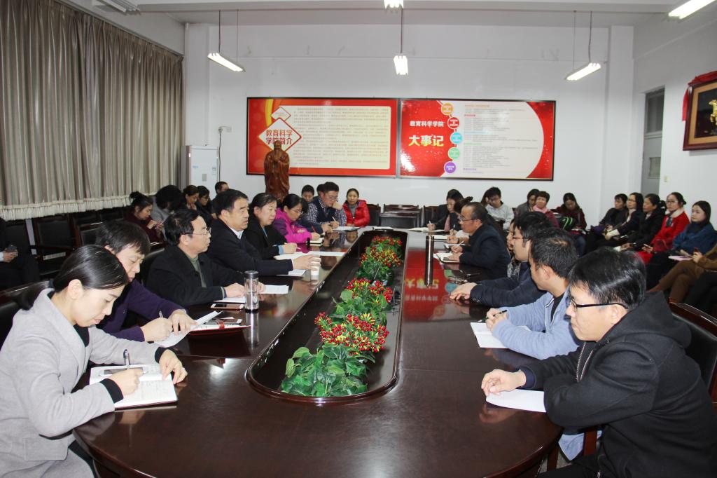 卫建国书记强调了学科攻坚的重要意义,分析了我校教育学学科发展现状,指出了学科建设中存在的问题,并提出了具体要求。他强调,学科攻坚关乎学校生存发展大计。教育学学科在上一阶段的攻坚行动中取得了一定成果,但是离预设目标还有差距,特别是在高水平科研成果产出、学科团队建设等方面还存在一定的薄弱环节。目前,学科攻坚已进入冲刺阶段,时间紧、任务重。对此,卫书记提出了四点要求:一是要积极申报国家级项目。学院党政要把2019年国家级项目申报作为工作的重中之重,在国家社科基金、教育部人文社科项目、全国教育规划课题等项目申报中抓好组织规划、指导服务。学院的博士、副教授以上教师要牢牢抓住国家项目申报的机会,做到全员申报,人人有责。二是要强力推进高端科研成果产出。学院要高度重视,聚焦产出,在数量、质量、进度等方面强力推进高端科研成果特别是高水平论文的培育和产出,做到有思路、有规划、有措施、有成效。三是要不断加大高层次人才引育力度。学院要主动出击,拓宽渠道,充分调动各方面的积极性,创造性开展高层次人才引育工作,以跨越式发展思维,采取非常规措施,下大力气加速引进各类高层次人才。 四是要全面细致做好保障工作。学院要在研究如何高效排课上下功夫,做好学科攻坚期间的教学工作安排,在研究出台激励措施上下功夫,激发广大教师参与学科攻坚的内生动力。