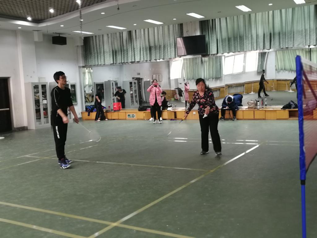 训练开始前,为了有效预防运动损伤,老师们进行了压腿等一系列热身活动。随后,陪练同学详细介绍羽毛球单打、双打的详细规则,场地边界、落地点以及计分方式后,训练正式开始。各位老师以极高的热情投入训练,如火如荼。练习过程中,陪练学生向老师们示范拦网,吊球,扣杀等专业动作,以提高打球的流畅性、协调性。训练中各位老师集中精力,就练习过程中出现握拍手势、发球姿势不标准的问题,陪练学生及时给予矫正,师生之间亲切交谈,训练成果显著。交流过程中,老师们表示本次训练有助于提升身体素质,放松心情。