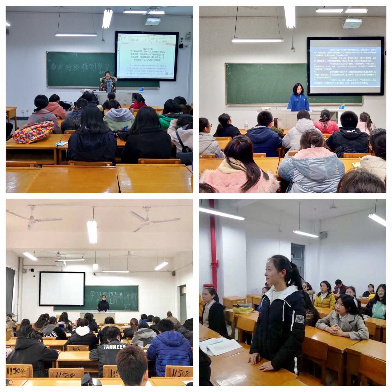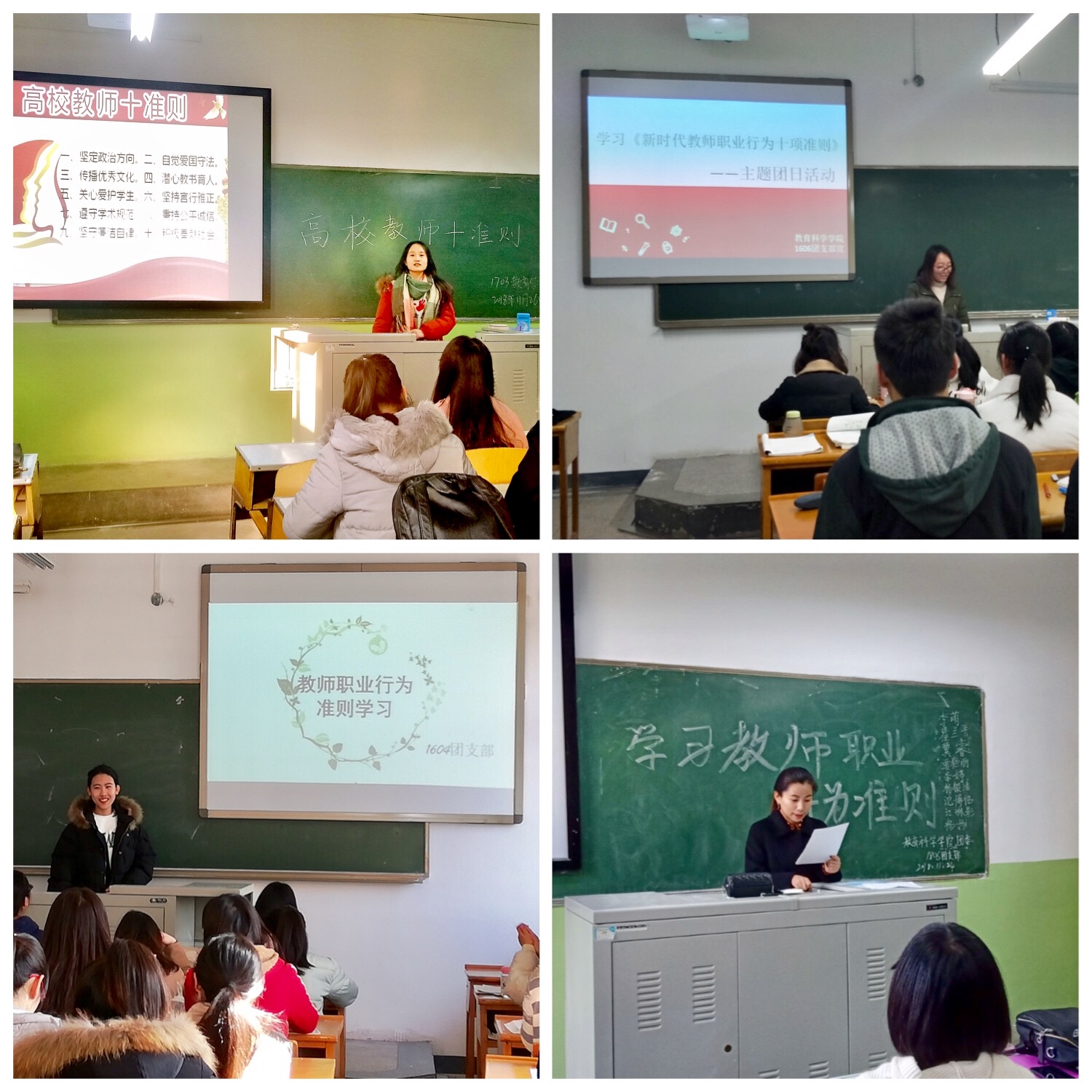 各团支部举行了学习“新时代教师职业行为准则”主题团日活动。