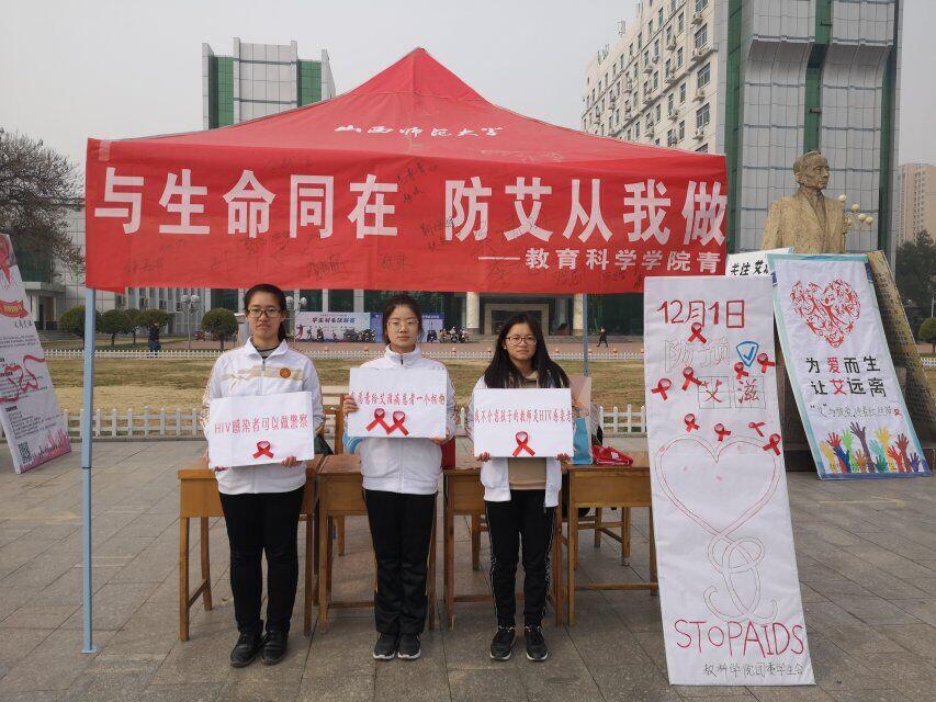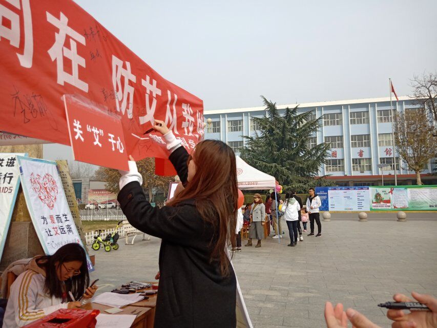 青年志愿者协会在巨人广场举办了以“关艾于心”为主题的预防艾滋病宣传活动。