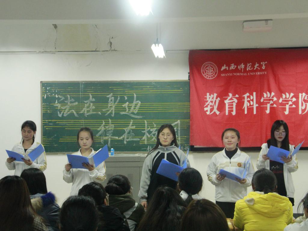 团委学生会于12月2日在09B201举办了以“法在身边,律在校园”为主题的活动。本次活动由权益部承办,大一大二各班权益委员、参演人员、评分人员参加。