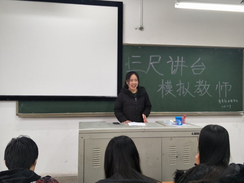 青年就业服务社于在07210教室举办“三尺讲台,模拟教师”活动,位同学们搭建了一个展示自己的平台。来自大一、大二各班30名同学参加了本次活动,共有9名同学进入决赛。青年就业服务社社长、副社长、团支以及各部门部长担任本次活动的评委。
