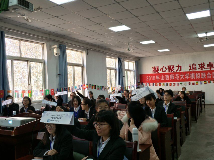 此次会议的主题是“伊朗介入叙利亚内战”,代表中国、美国、英国、德国、叙利亚、利比亚,伊朗等二十多个国家的39名同学化身外交官,在“联合国会议”上,为“各自国家”的利益进行辩论、磋商、演讲、游说,“国家”之间相互协商,达成共识。