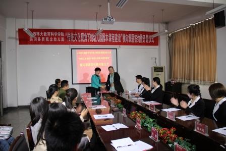 张潮副院长和洪洞县新概念幼儿园马玉兰园长共同签署了《传统文化视角下的幼儿园园本课程研发协议》。双方将在未来一年半的时间里开展多种形式的科研交流合作,实现资源共享、优势互补,共同构建富有新概念幼儿园特色的、科学的、适宜的,可操作的园本课程体系。该项目的正式签约也标志着禁漫之家