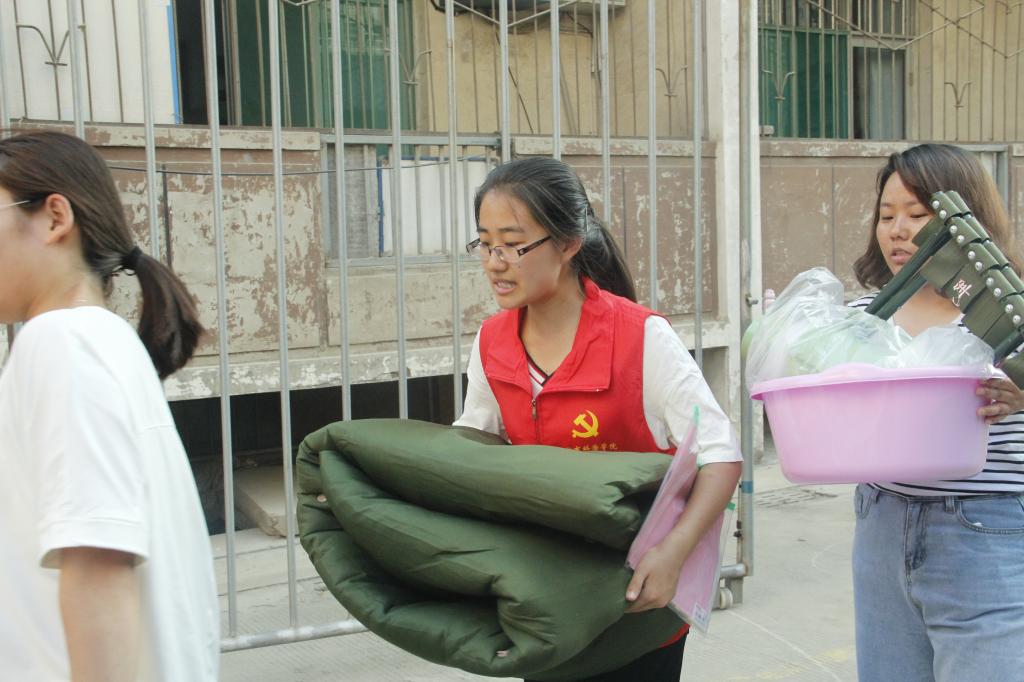 (志愿者帮新生搬被褥)