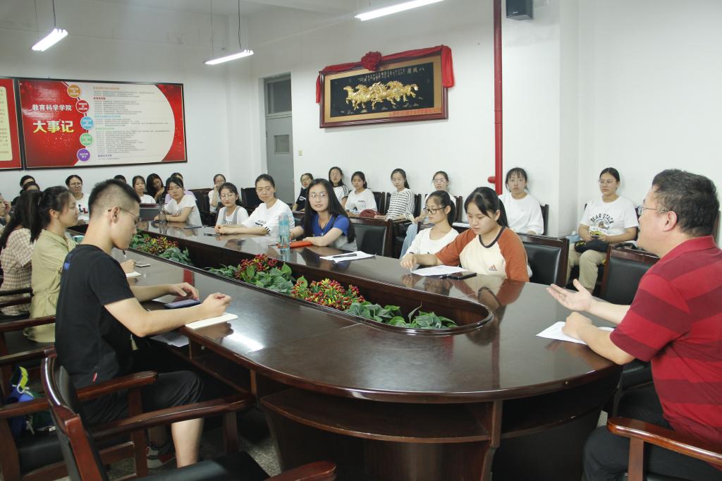 召开新生职业规划教育主题会,主讲老师为心理系主任仝文老师与学前教育系主任席小莉老师。19级心理学和学前教育专业的同学参加了此次会议。