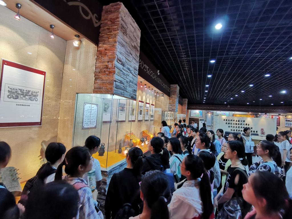 晋学博物馆展现了山西作为华夏文明起源的摇篮,是如何在上古时期走在文明的前列,用实物证实了“华夏文明看山西、山西文明看晋南”的观点。博物馆包括了丁村文化、陶寺文化、晋文化三个展区,馆内陈列的古器数量众多,有先民生活用品和祭祀用具以及三晋历史文化遗址,为同学们呈现出一幅幅鲜活生动、波澜壮阔的历史画卷。讲解员生动的讲解激起了同学们认真学习历史文化的浓厚兴趣。