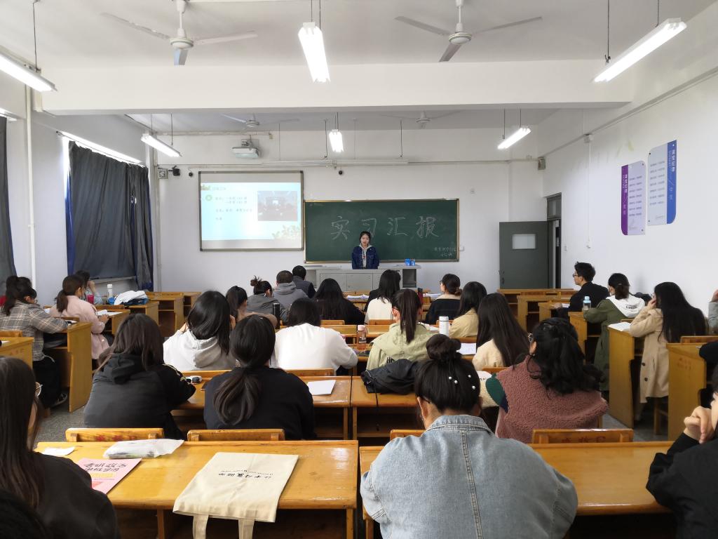 在会上,汇报的同学们向在场的老师同学们生动讲述了他们在实习过程中自己有趣的经历、遇到的问题以及自己的收获。实习生从教学方面回顾自己的实习生活,同时也反思自己在实际操作中发生的问题以及存在的不足之处。此次汇报,同学们展示了自己丰富多彩的实习生活,加强了互相之间的教学经验交流,并加强了对心理教师这一职业的理解和认同,明确了自己作为一名心理老师的标准是什么,应该如何做一名优秀的心理教师。