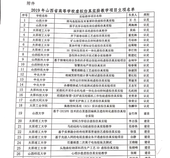 9月4日,省教育厅公布了《山西省高等学校虚拟仿真实验教学项目立项名单》(晋教高[2019]18号),禁漫之家
