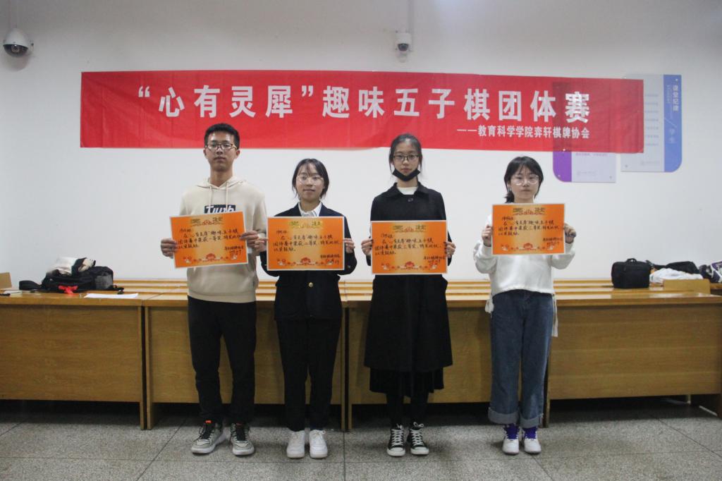 弈轩棋牌协会在11514、11516教室举办“心有灵犀”趣味五子棋团体赛,大一、大二、大三各班学生积极报名参加。