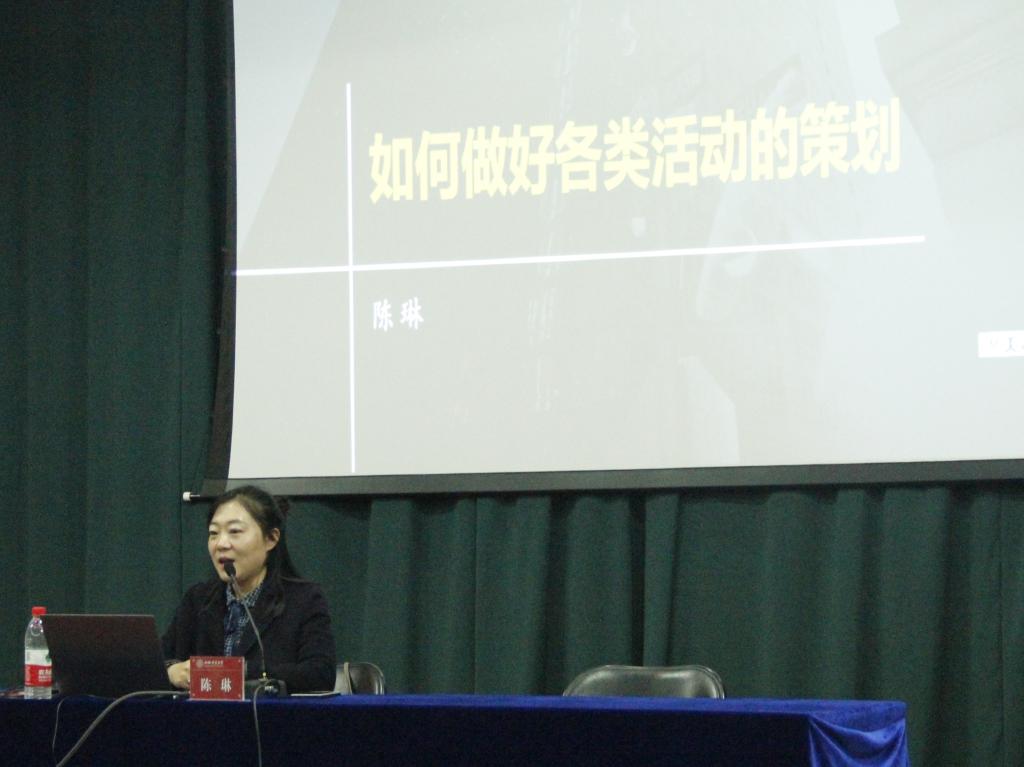 马克思主义的产生实现了人类思想史上的伟大变革,对当代青年大学生的思想起到引领作用。在第一场讲座中,本志红老师从“千年第一思想家”马克思、马克思主义的当代价值和青年大学生要自觉学习和运用马克思主义三个方面对“感悟马克思主义的真理力量”这一主题进行了讲解。陈琳老师在第二场讲座中通过列举实际案例向学员们阐述了如何做好各类活动的策划。老师从创新点、学习积累与变通、专业实践和特殊表现方式等方面对各类活动进行了详细介绍,强调策划创新的重要性,让学员们在模拟现实情景中感悟活动本身的意义和价值。