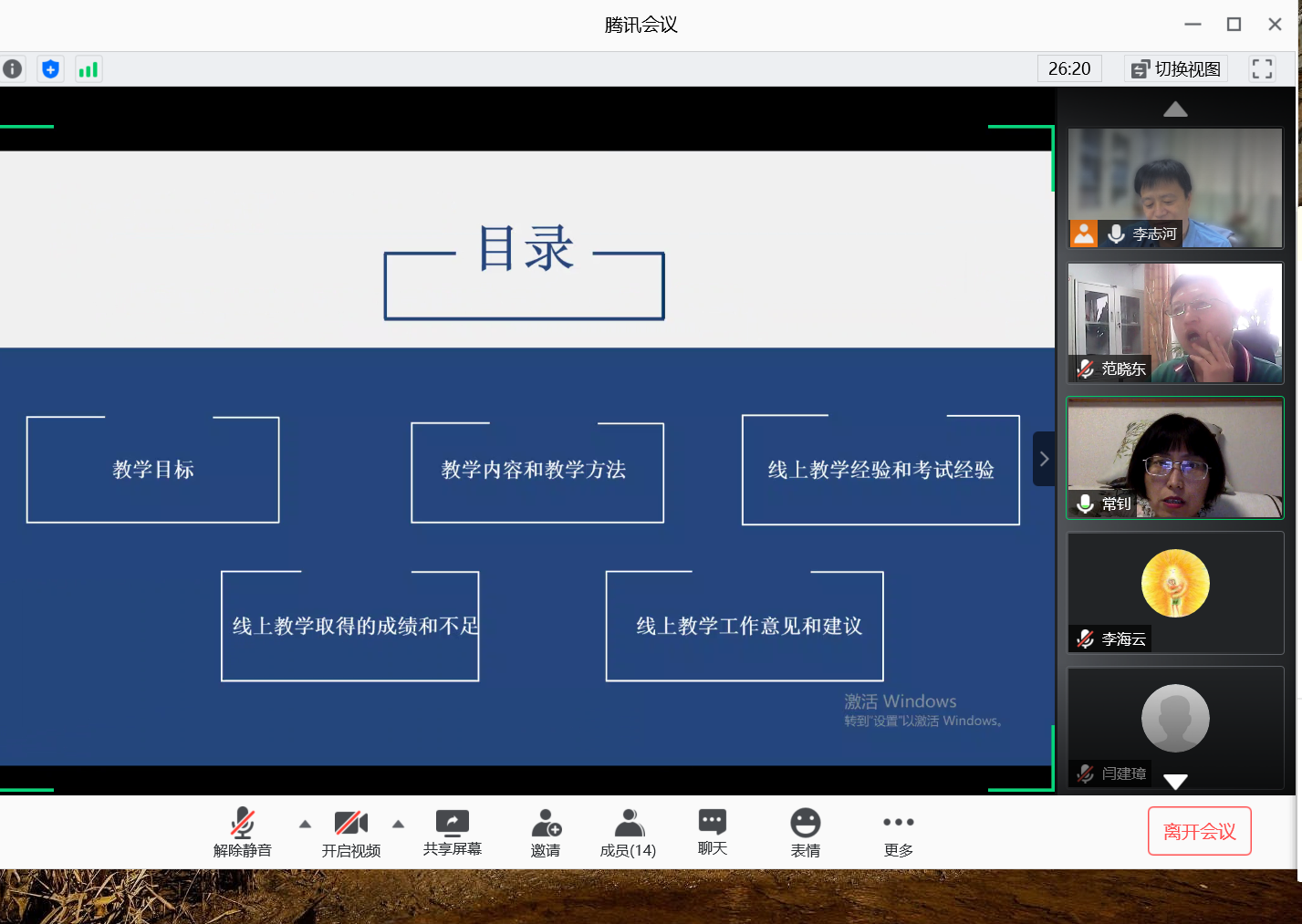 运用腾讯会议平台召开了教育学学科专业研究生线上教学研讨会。参与会议的有教育学原理、教育经济与管理、高等教育学、学前教育学和少年儿童组织与思想意识教育等专业的十几位任课教师,每一位教师都结合自己所教专业和课程作了交流发言,并就其中一些问题进行了讨论。