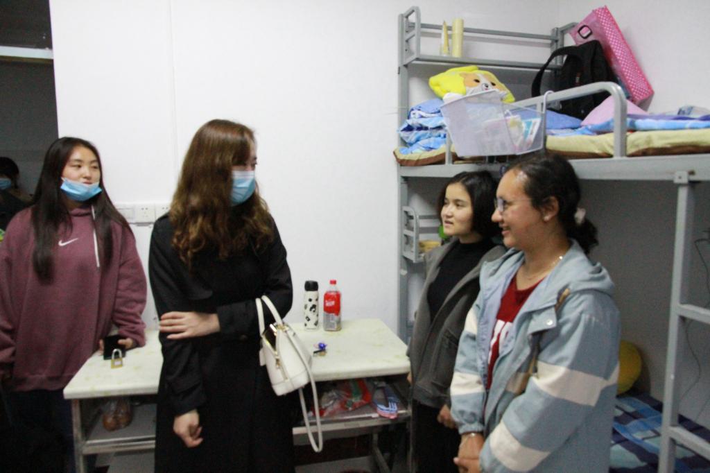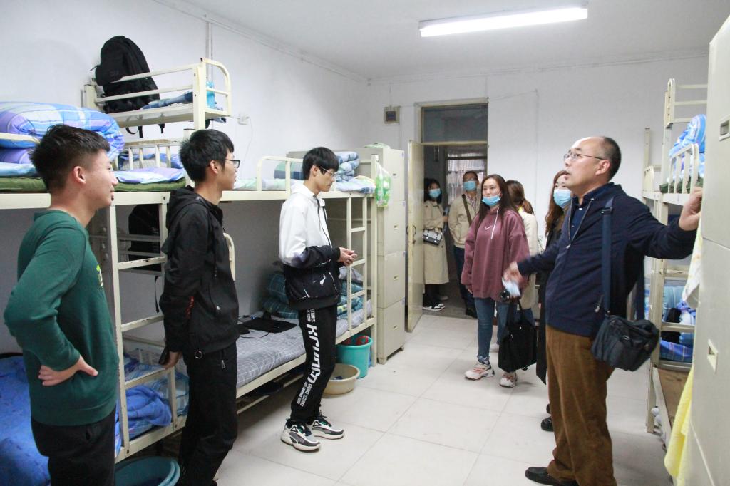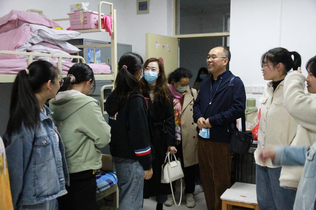 党委书记何喜均、院长张潮、党委副书记高霞、副院长李志河、副院长韩琴、各班辅导员以及团委学生会代表前往新生宿舍进行了亲切慰问。