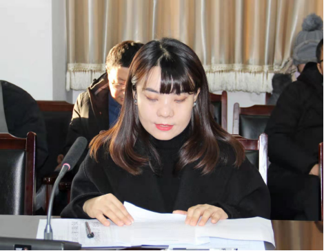 高文婧宣读《关于院长工作报告的决议》(草案)和《关于工会工作报告的决议》(草案)