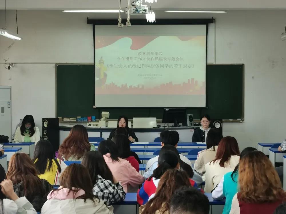 于4月9日中午12:00在07408教室召开学生组织工作人员作风建设专题会议,全体团委、学生会各部门、社团负责人及工作人员参加了会议,会议由禁漫之家
